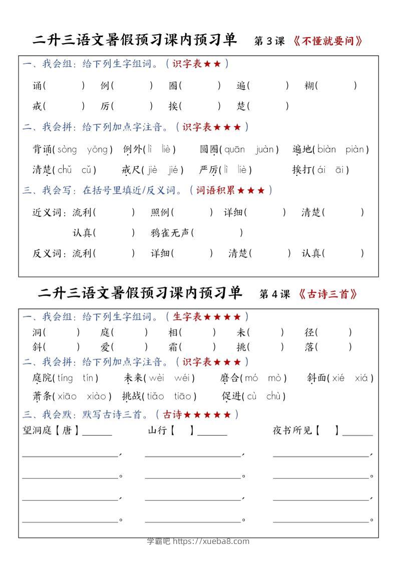 三上语文-暑假预习课内预习单-山坡xueba8_admin10天前发布关注私信04615三上语文-暑假预习课内预习单-山坡此内容为付费资源,请付费后查看¥19黄金会员(限时)免费钻石会员(永久)免费立即购买您当前未登录!建议登陆后购买,可保存购买订单格式pdf页数13 页大小17.52 MB付费资源 ——预览已结束,还剩11页未读——开通会员后可免费下载高清完整文档 © 版权声明文章版权归作者所有,未经允许请勿转载。THE END小学语文 喜欢就支持一下吧点赞15 分享QQ空间微博QQ好友海报分享复制链接收藏