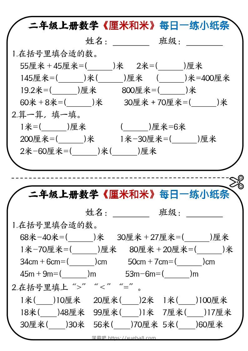 二年级上数学《厘米和米》每日一练小纸条xueba8_admin13天前发布关注私信02011二年级上数学《厘米和米》每日一练小纸条此内容为付费资源,请付费后查看¥19黄金会员(限时)免费钻石会员(永久)免费立即购买您当前未登录!建议登陆后购买,可保存购买订单格式pdf页数6 页大小336.04 KB付费资源 ——预览已结束,还剩4页未读——开通会员后可免费下载高清完整文档 © 版权声明文章版权归作者所有,未经允许请勿转载。THE END小学数学 喜欢就支持一下吧点赞11 分享QQ空间微博QQ好友海报分享复制链接收藏