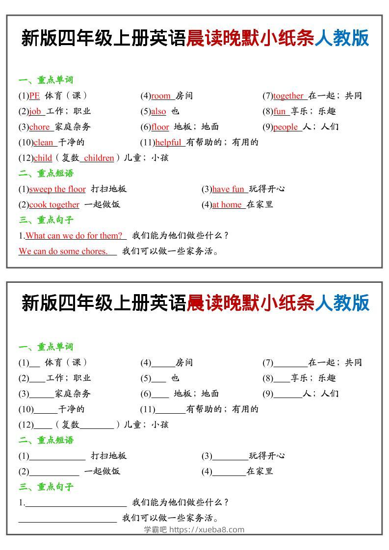 四年级上人教PEP版英语晨读晚默小纸条xueba8_admin昨天发布关注私信04515四年级上人教PEP版英语晨读晚默小纸条此内容为付费资源,请付费后查看¥19黄金会员(限时)免费钻石会员(永久)免费立即购买您当前未登录!建议登陆后购买,可保存购买订单格式pdf页数13 页大小620.18 KB付费资源 ——预览已结束,还剩11页未读——开通会员后可免费下载高清完整文档 © 版权声明文章版权归作者所有,未经允许请勿转载。THE END小学英语 喜欢就支持一下吧点赞15 分享QQ空间微博QQ好友海报分享复制链接收藏