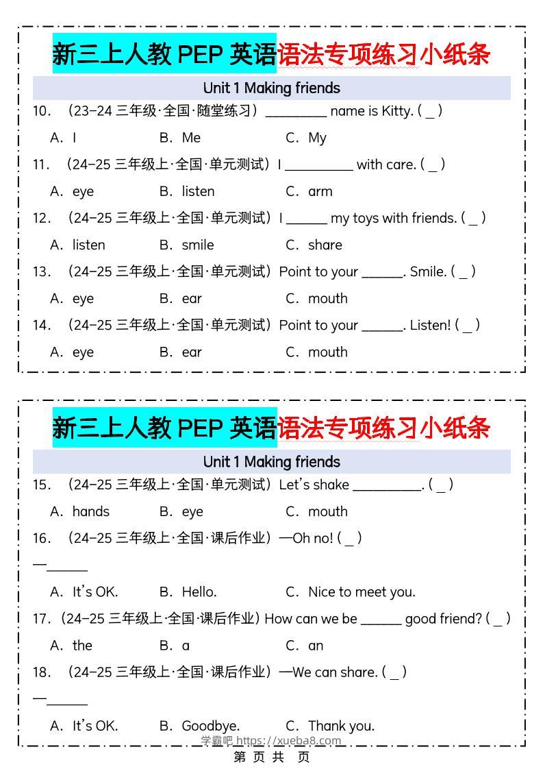 新三上人教PEP英语语法专项练习小纸条(含答案28页)xueba8_admin3天前发布关注私信0449新三上人教PEP英语语法专项练习小纸条(含答案28页)此内容为付费资源,请付费后查看¥19黄金会员(限时)免费钻石会员(永久)免费立即购买您当前未登录!建议登陆后购买,可保存购买订单格式pdf页数28 页大小793.30 KB付费资源 ——预览已结束,还剩26页未读——开通会员后可免费下载高清完整文档 © 版权声明文章版权归作者所有,未经允许请勿转载。THE END小学英语 喜欢就支持一下吧点赞9 分享QQ空间微博QQ好友海报分享复制链接收藏