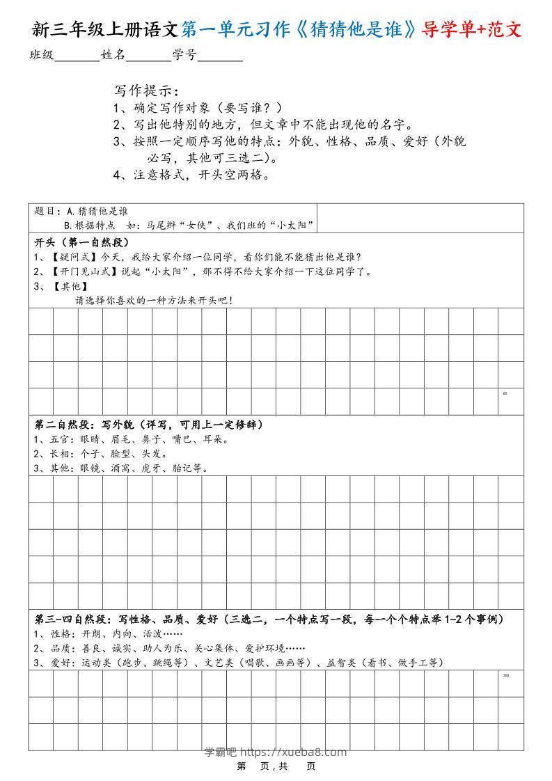 新三上语文1-8单元习作导学单(写作框架+范文)16页xueba8_admin昨天发布关注私信02410新三上语文1-8单元习作导学单(写作框架+范文)16页此内容为付费资源,请付费后查看¥19黄金会员(限时)免费钻石会员(永久)免费立即购买您当前未登录!建议登陆后购买,可保存购买订单格式pdf页数17 页大小1.24 MB付费资源 ——预览已结束,还剩15页未读——开通会员后可免费下载高清完整文档 © 版权声明文章版权归作者所有,未经允许请勿转载。THE END小学语文 喜欢就支持一下吧点赞10 分享QQ空间微博QQ好友海报分享复制链接收藏